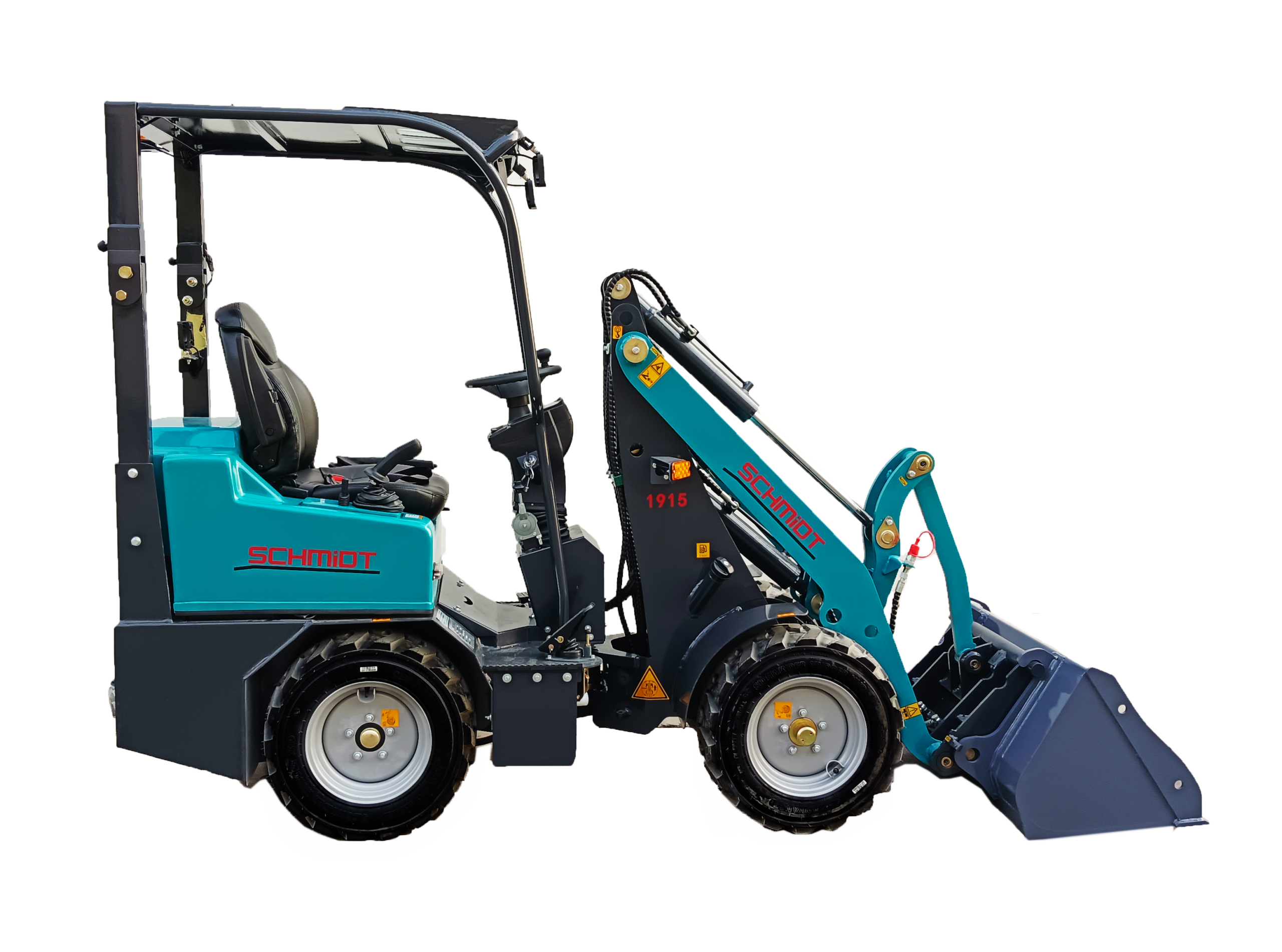 SCHMIDT 1915 este modelul de bază din categoria încărcătoarelor frontale articulate. Lungimea sa totală cu cupa este de 3 metri, lățimea sa este de 90 cm, iar raza maximă de virare internă nu va depăși 1000 mm. Datorită designului său compact, mașina este perfectă pentru spații mici unde trebuie efectuate lucrări precise.