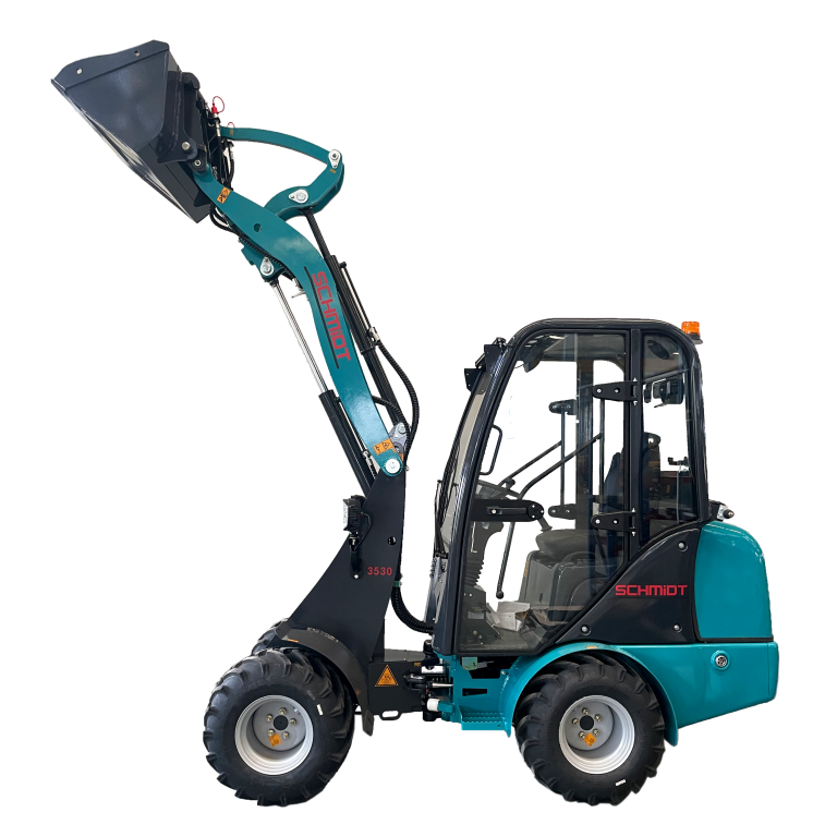 SCHMIDT 3530 este un încărcător frontal articulat compact și manevrabil, echipat cu o cabină confortabilă, perfect pentru o gamă largă de lucrări agricole.